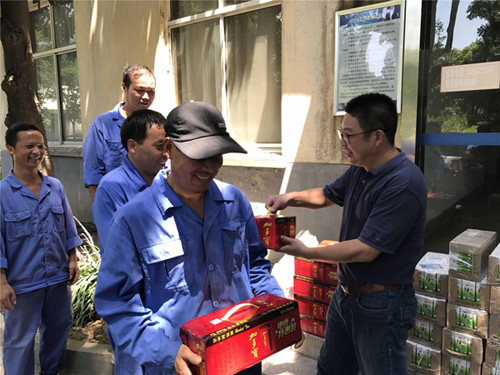 ![]() 连日来,南京持续高温,昨天更是达到38℃。7月19日上午,公司领导徐志峰、祝烨然来到铁心桥工厂,看望慰问高温期间坚守岗位的一线工人,为他们送上清凉解暑用品。对他们高温期间坚持工作的精神表示敬意,领导的关心极大地鼓舞了职工的工作热情。 连日高温,对铁心桥生产工人是极大的考验,生产车间高大空旷,加之通风要求严格,无法安装空调等降温设备。高温天气时,生产车间犹如蒸笼。生产任务紧急时,工人必须连夜作战,即使身上都被汗水浸透,也从来不拖生产后腿。 慰问期间,徐总经理亲切询问工人的身体状况,对工人的饮食和宿舍环境提出了进一步要求,徐总强调:一定要让工人有一个好的休息环境,合理安排生产任务,劳逸结合,保重身体,不能让任何一人高温中暑,生命安全高于一切。 |