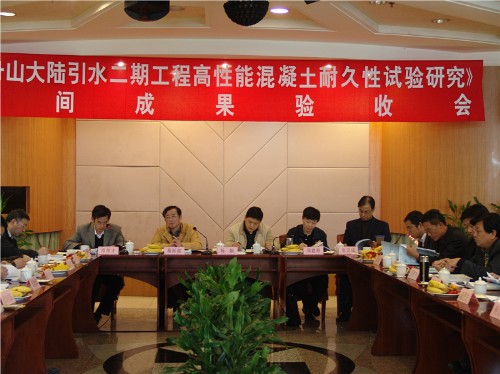2010年11月30日,舟山大陆引水二期工程办公室在南京组织召开了由南京水利科学研究院承担的《舟山大陆引水二期工程高性能混凝土耐久性试验研究》成果验收会。参加验收会的有浙江省水利厅、河海大学、南京工业大学、天津市南水北调建设委员会办公室、中水珠江设计公司、中水十六局、南京市交通运输局、浙江省水电质监中心、浙江省水电设计院、浙江省水电建筑监理公司、浙江省水电建筑安装有限公司、舟山市水务局等单位的领导、专家和代表。验收专家听取了项目组的汇报,审阅了相关技术资料,经认真讨论认为: 该项目提供的技术资料真实完整、数据翔实,符合验收要求,完成了合同规定的内容,成果可在舟山大陆引水二期工程中应用。 |