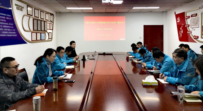 2019年11月27日,江南电竞 ,专业游戏攻略与玩家社区特邀河海大学土木与交通学院赵海涛教授,就混凝土裂缝等关键技术问题开展学术交流座谈会,会议由公司党支部书记、副总经理祝烨然主持,徐志峰董事长、唐修生总工程师及公司技术部、事业发展部等部门负责人和相关人员参加了交流座谈。
