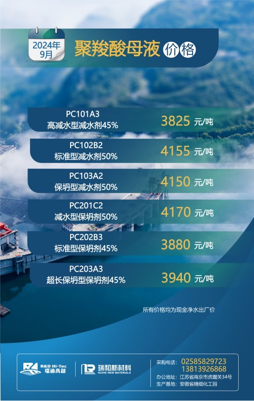 【聚羧酸系减水剂母液月度最新价格】丨2024年9月